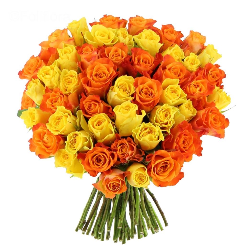 Букет из 51 желтой и оранжевой розы